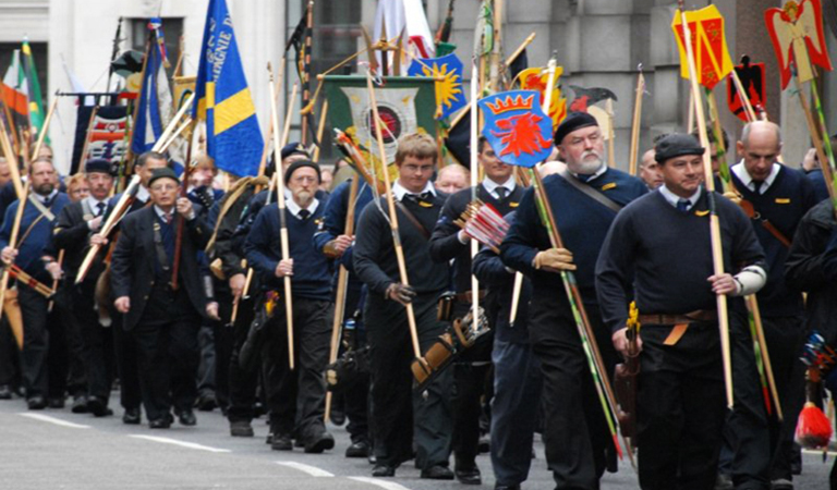Great marches of Archers took place as thousands went out into the fields of Finsbury, Moorfields, Spitalfields and Bethnal Green. These were colourful occasions of great splendour and marked out the Archers and their longbows in all their glory.